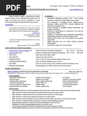 Supplier Quality Engineer Resume Pdf
